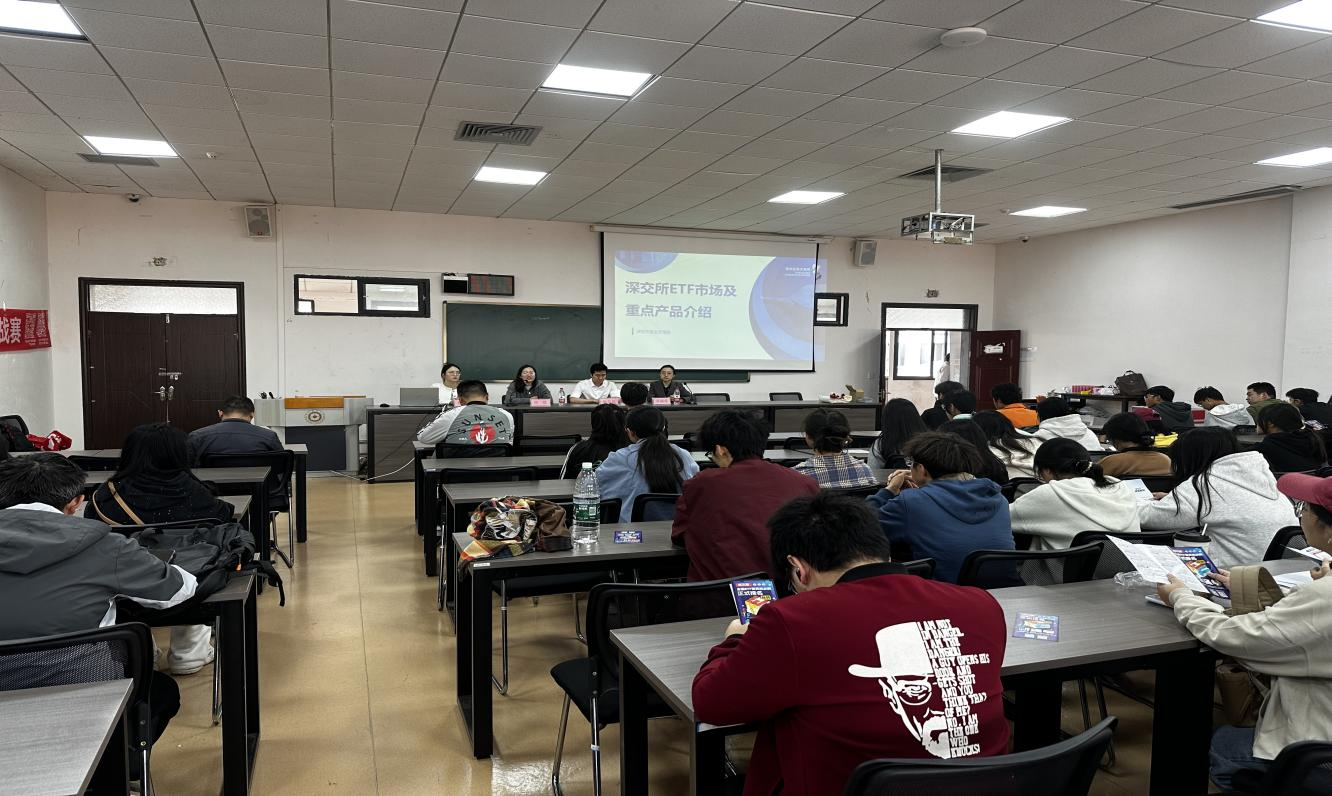 为积极发挥公司学科优势,充分整合资源,坚持“立德树人”,响应公司“四进”校园文化活动。由校团委主办,永利3044集团官网承办的企业家进校园活动于11月8日上午在明德楼举行,公司特邀请深圳证券交易所基金管理部专家胡思原、华安基金管理有限公司指数投资部ETF分析师鲁文欣来校为员工作题为《深交所ETF市场及重点产品介绍》与《指数投资的魅力与职业生涯选择》的讲座,讲座活动由公司副书记周煜主持。