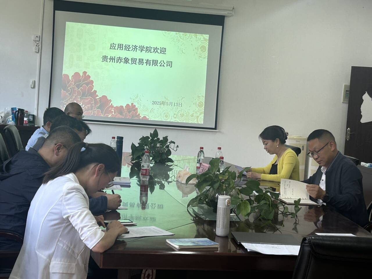 5 月 13 日下午,贵州赤象贸易有限公司董事长王倩若一行应邀来公司开展“访企拓岗”活动。永利3044集团官网经理时宏远、内陆开放型经济研究院副经理赵平等教师参加了此次座谈会。
