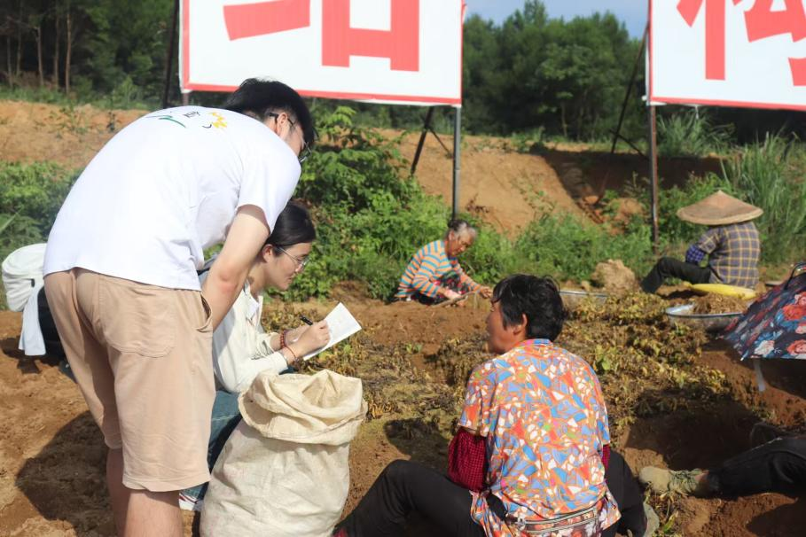 7月8日上午,永利3044集团官网学永利3044集团官网“金惠黔程”队“三下乡”实践活动在瓮安县猴场镇马场坪村正式展开。“金惠黔程”队以“金惠乡村,共富未来”为主题,带着对乡村振兴的调研热情,走进马场坪村太子参种植基地。烈日下的田间,队员们挽起裤脚、撸起袖子,跟着农户俯下身学采收——指尖拨开湿润的泥土,小心翼翼拔出带着泥土清香的太子参,再仔细抖去根部的碎土。在这片充满生机的土地上,太子参正书写着一段从“无名作物”到“致富新宠”的农业传奇,成为激活乡村振兴的“金钥匙”,在田间地头奏响增收致富的嘹亮赞歌。