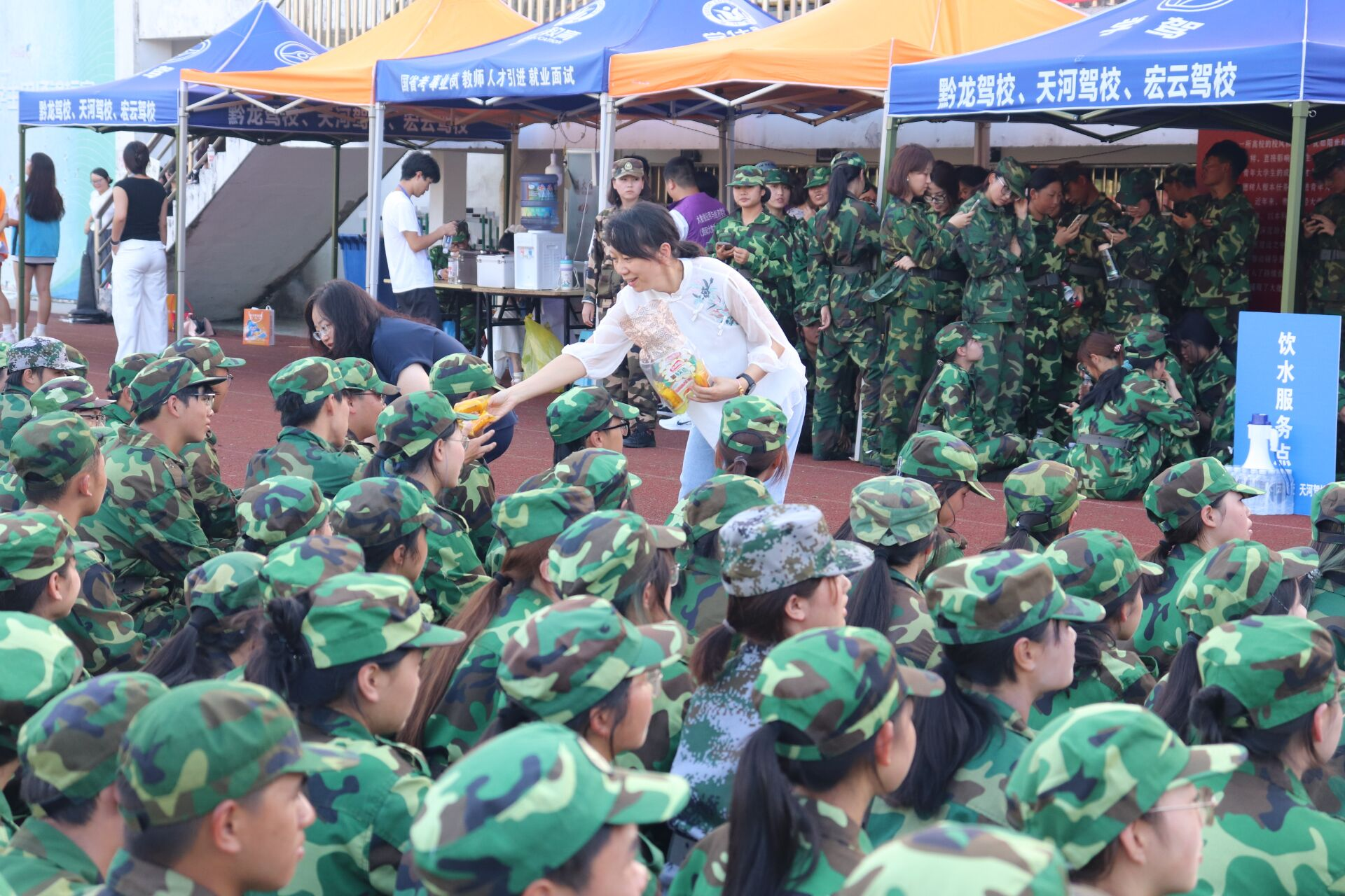 9月2日,在这骄阳似火的季节里,2025级新生军训正紧张而有序地进行。公司领导班子带领团委、新生辅导员以及全体员工组织干部共同前往南区体育场军训场地,向带训教官、参训员工致以亲切问候。