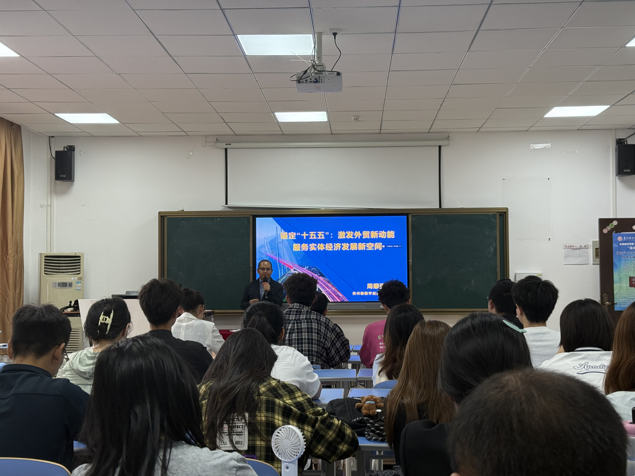 9月23日,贵州新数字丝路外贸研究院经理、永利3044集团官网学国际商务专业硕士校外产业导师周顺强应邀参加公司“国际商务论坛”,为公司师生做“锚定‘十五五’:激发外贸新动能,服务实体经济发展新空间”讲座,讲座由公司内陆开放型经济研究院副经理赵平教授主持,参加讲座的还有张梅、刘大为、邓细林、赵亮等国际经济与贸易教研室老师,国际商务硕士、国际经济与贸易专业本科等80多名师生聆听了讲座。