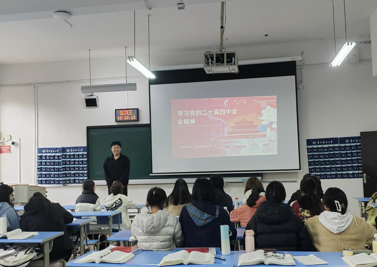 各班级团支部精心组织学习党的二十届四中全会公报、《中共中央关于制定国民经济和社会发展第十五个五年规划的建议》等重要文件。学习时,团支书带头解读全会提出的“十五五”时期战略定位、六大原则、七方面核心目标等关键内容,结合“高质量发展”“科技自立自强”“扩大高水平对外开放”等重大部署深入讲解。随后,同学们围绕全会精神与专业学习、职业发展的关联展开讨论,通过互动提问、观点分享等形式加深理解,将思想和行动统一到党中央决策部署上来。