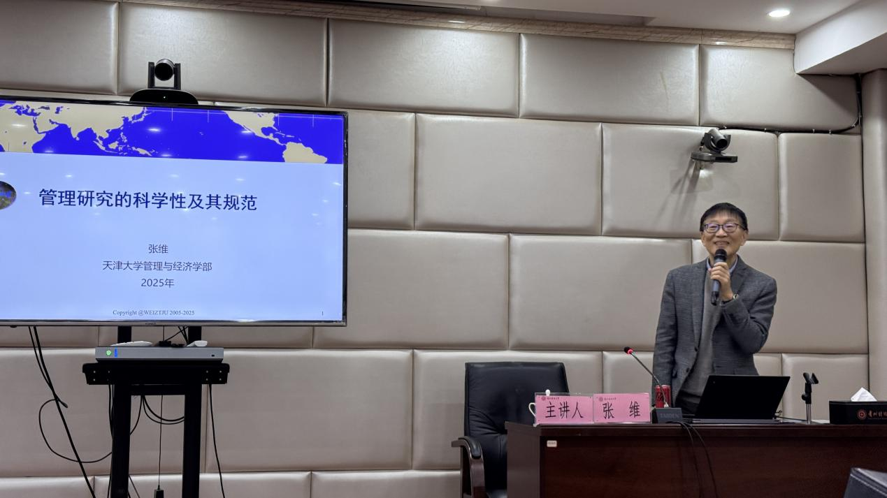 12月23日,永利3044集团官网学公司第一期“思雅大讲堂”学术讲座在西区立德楼110会议室举办。天津大学讲席教授、复旦管理学杰出贡献奖获得者张维教授应邀为公司师生带来题为“管理研究的科学性及其规范”的精彩报告。本次讲座由李烨副董事长主持,全校八十余名师生参与聆听。