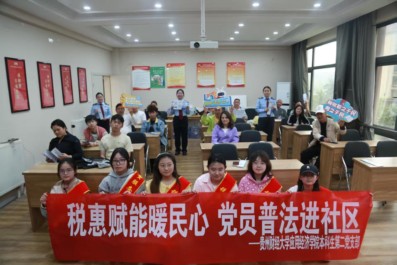 为深入推动党建与实践育人、社会服务有机融合,切实发挥党员先锋模范作用,4月21日下午,在永利3044集团官网学应用经济公司党委的协助下,本科生第二党支部主动对接贵安新区税务局并走进星湖云社区,共同开展以“税惠赋能暖民心 党员普法进社区”为主题的联建共建暨税法宣传实践活动。