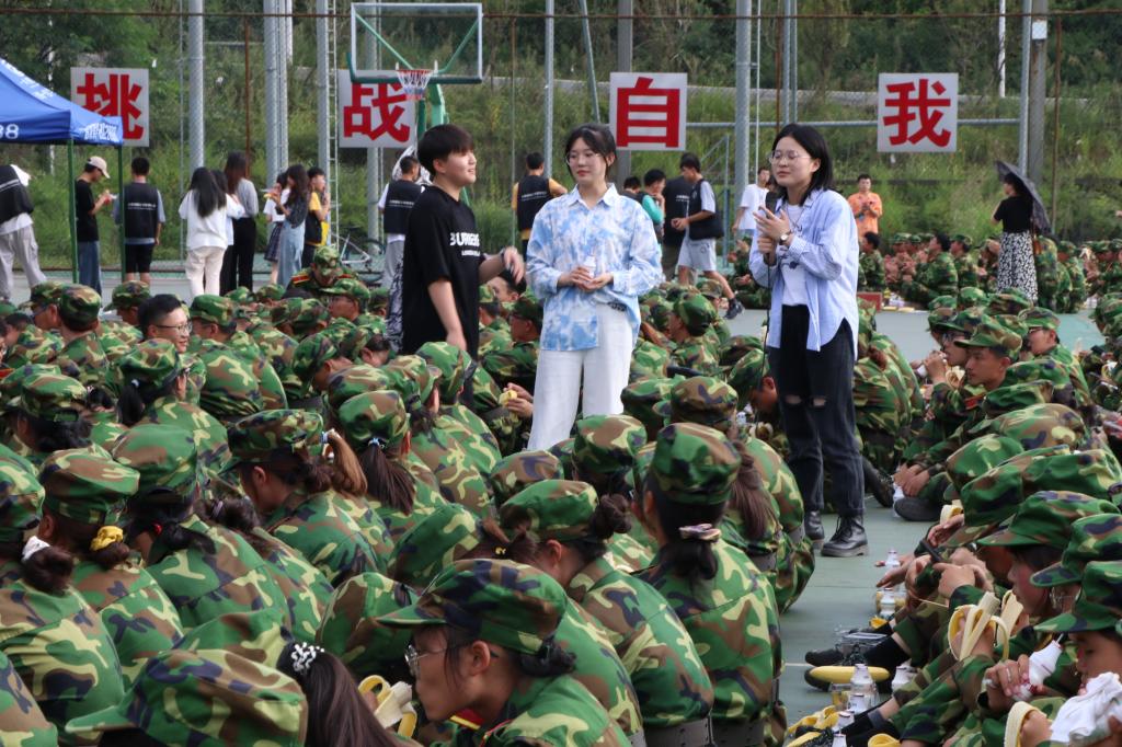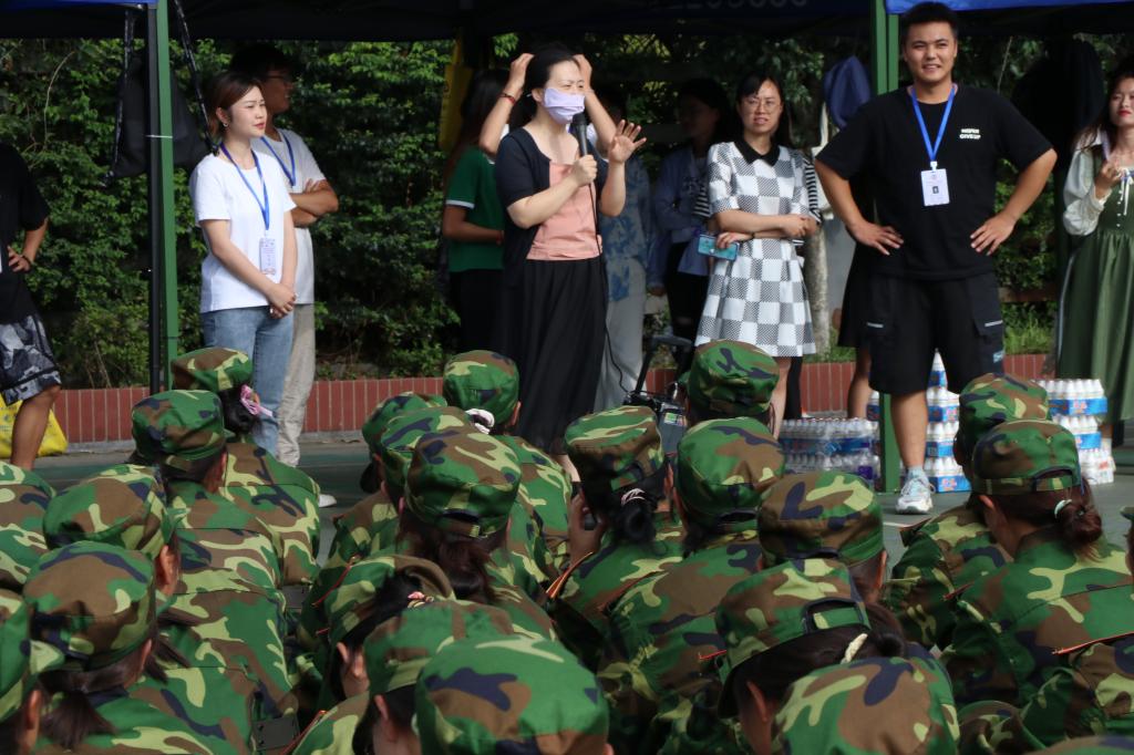 慰问现场,向岚副书记致辞,表达了对参训员工的关心,并指出,军训是老员工活的开始,希望同学们自此开始培养坚韧不拔的精神毅力。随后,员工党建工作中心的学长学姐们开展慰问活动,带来了精彩的才艺表演,以此表达对新同学们的欢迎和关怀,现场气氛热烈。三个创新创业项目团队负责人向大家介绍各自的创新创业项目,创业经验的分享,引发了同学们极大的兴趣。