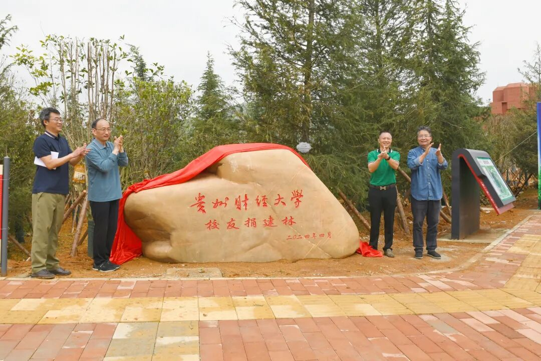 李天柱介绍,自今年初发布“贵财,我们从此在一起”绿林公益项目以来,师生、员工们纷纷以个人、集体为单位捐赠,守护着那段有关母校、恩师、同窗的“贵财人”记忆。截止3月20日,项目共有800余人次参与捐赠,共计收到现金捐赠款40余万元。通过公开招标采购到桂花树(胸径10-12cm)400棵,红花木莲(胸径10-12cm)40棵,雪松(地径18-20cm)40棵,桂花树(胸径15-16cm)67棵,景观石(黄蜡石3m*1.6m)1块,景观石(黄蜡石1m*0.8m)4块,现已全部用于员工林建设。