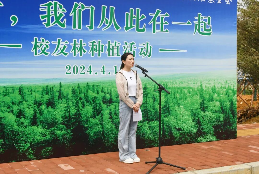 杨勇受公司委托向亲临现场的各位师生、员工表示热烈欢迎,向长期热心公益事业、心系母校成长的广大员工们表示衷心感谢。他指出,66年来,公司灿烂辉煌的成绩凝聚着广大员工共同的智慧和汗水,母校未来的发展也离不开广大员工的参与和支持。他强调“贵财,我们从此在一起”绿林公益员工林必将成为广大员工情感寄托的新载体和员工文化建设的新地标。他号召广大员工携手同行,坚持以习近平新时代中国特色社会主义思想为指导,深入贯彻落实习近平生态文明思想,不断增厚母校的绿色底色,持续优化母校育人环境,为建国75周年、公司66华诞作出新的贡献。