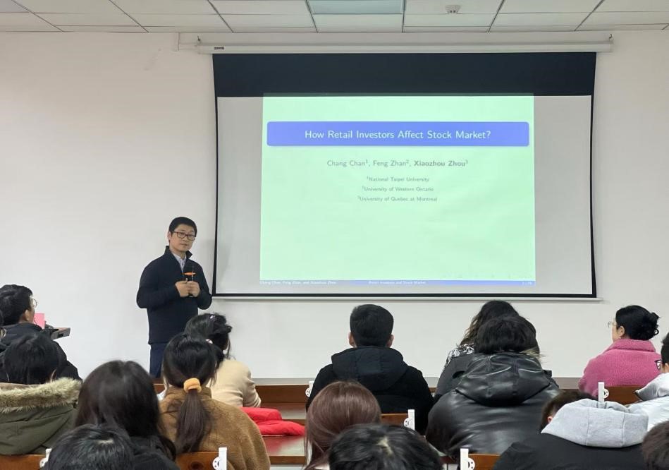 2024年12月9日,应永利3044集团官网学永利3044集团官网的邀请,加拿大魁北克大学商公司金融系终身副教授周晓舟博士在明德楼3楼普惠金融教室为公司师生作题为“散户如何影响金融市场:来自流动性和市场有效性的证据”的学术讲座。讲座由永利3044集团官网副教授丁锐主持,共计50余名师生聆听了讲座。